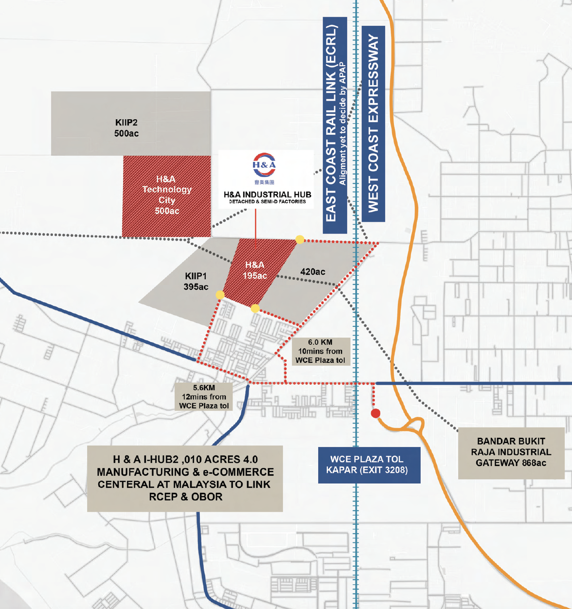 With a 2010-acre industrial estate spread, H&A Industrial Hub is becoming one of the most popular e-commerce sites in Malaysia to build a business. Apart from its strategic location connecting Kuantan and Port Klang, and from there to the Greater Klang Valley, KLIA and Ipoh, as well as ECRL (EastCoast Rail Link) and OBOR (Belt and Road).